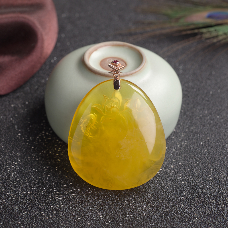 • 18K鸡油黄金绞蜜连年有余吊坠