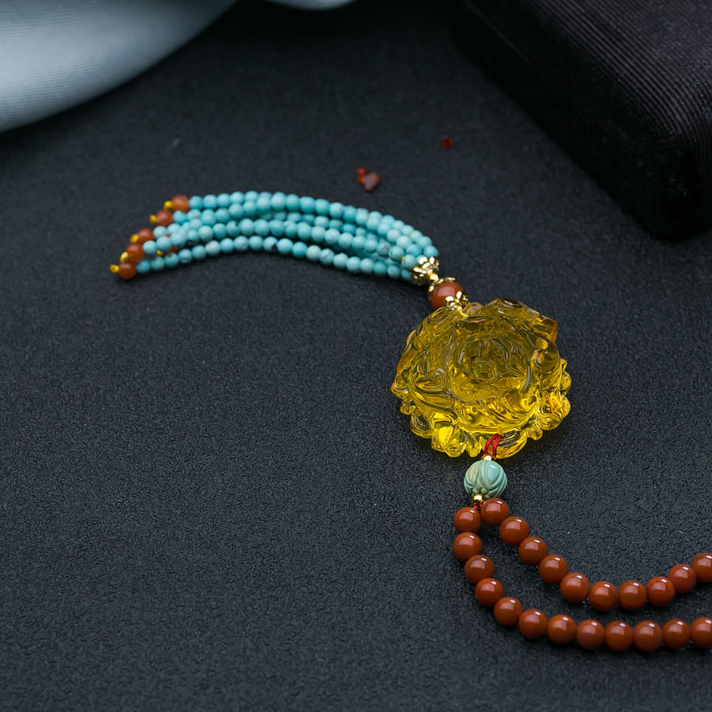 • 金珀牡丹花毛衣链
