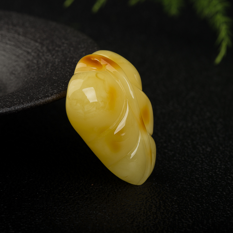 • 鸡油黄蜜蜡金枝玉叶吊坠