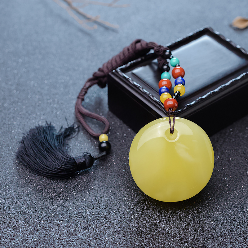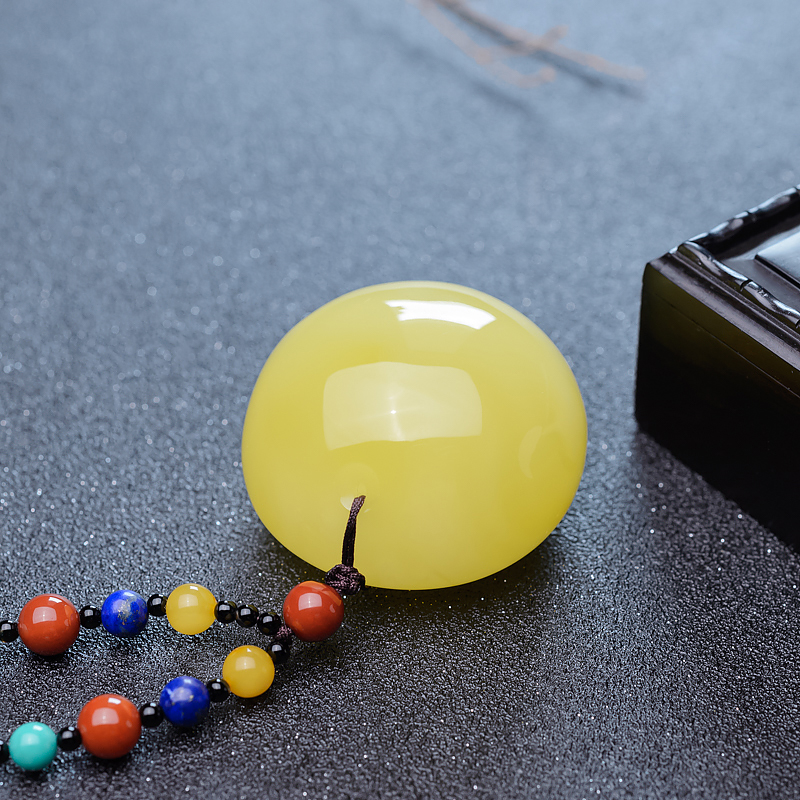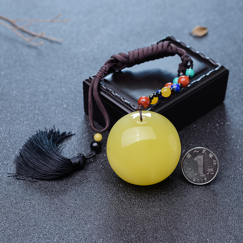 • [名  称] 鸡油黄蜜蜡蛋面形吊坠