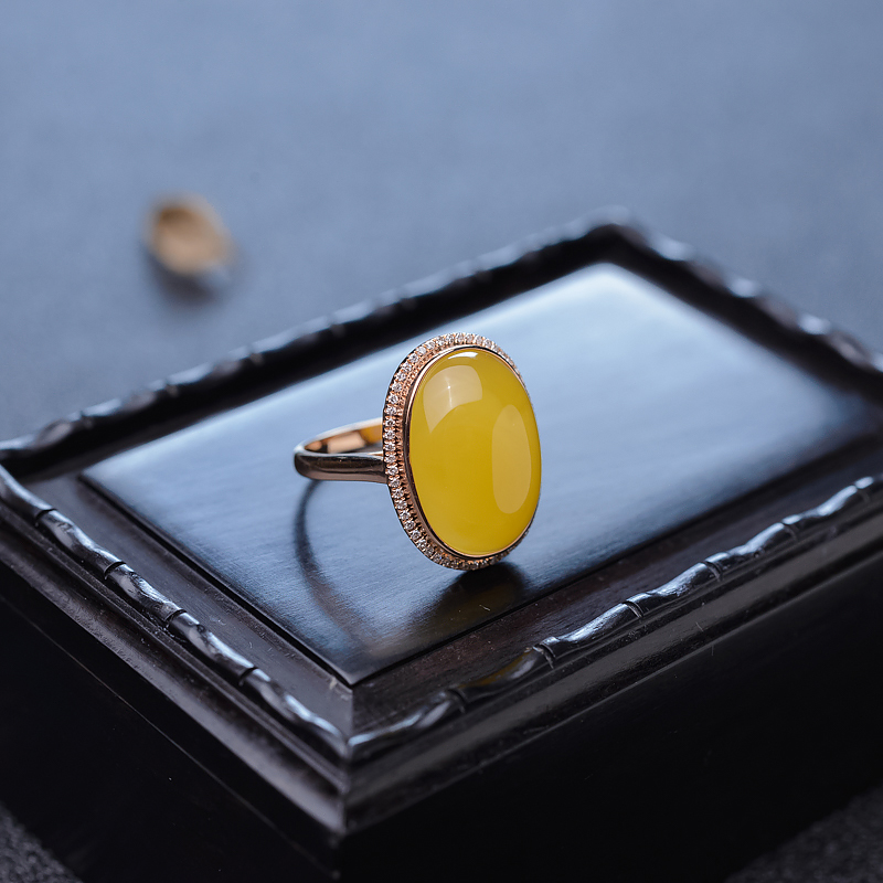 • [名  称] 18K鸡油黄蜜蜡戒指