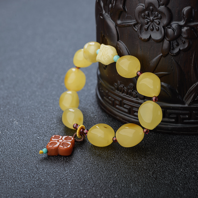 • 鸡油黄蜜蜡随形单圈手串