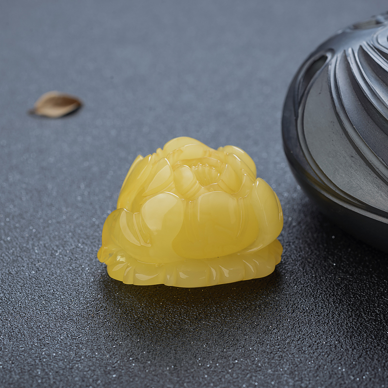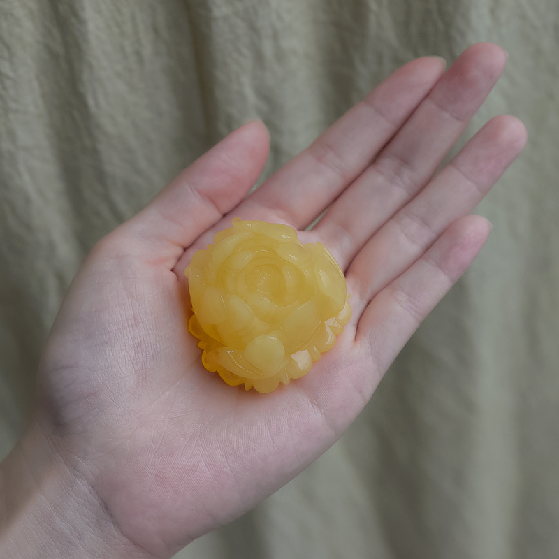 • 鸡油黄蜜蜡牡丹花吊坠