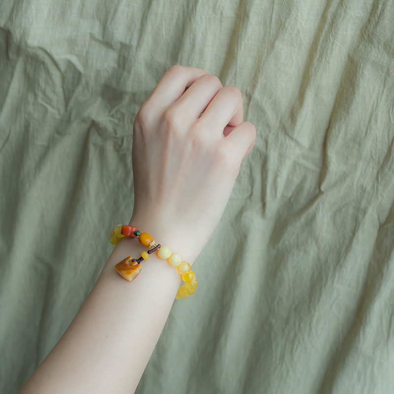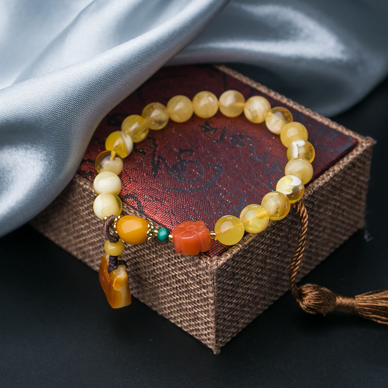 • 8.5mm鸡油黄金绞蜜单圈手串