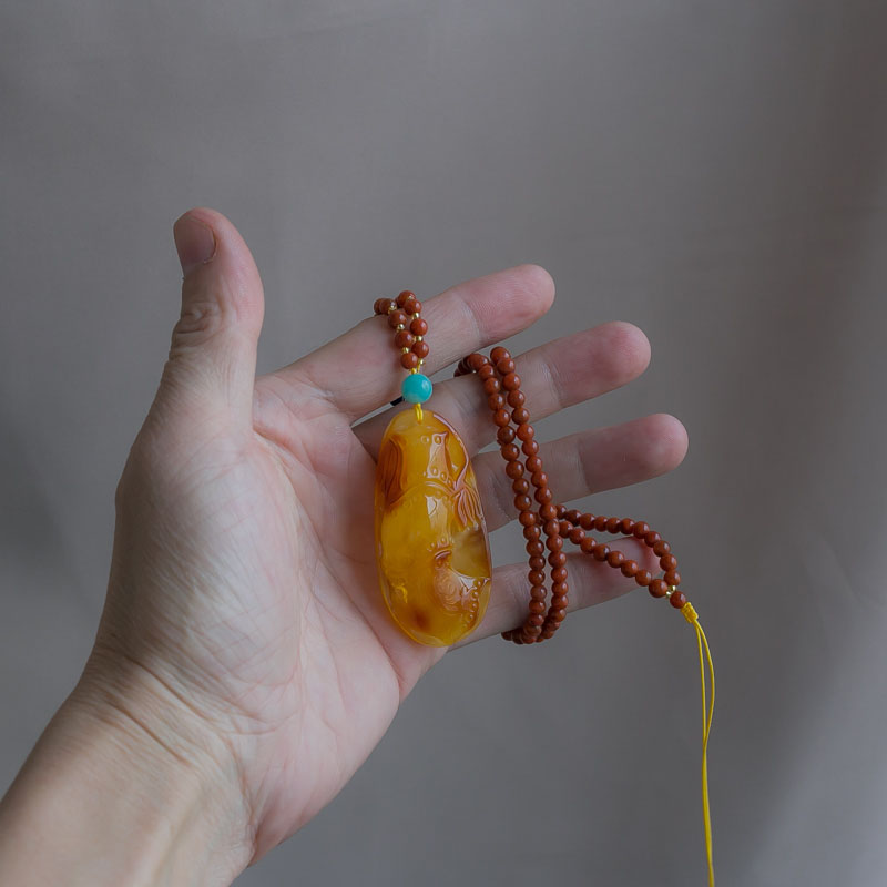 • [名  称] 带皮鸡油黄蜜蜡节节高升吊坠