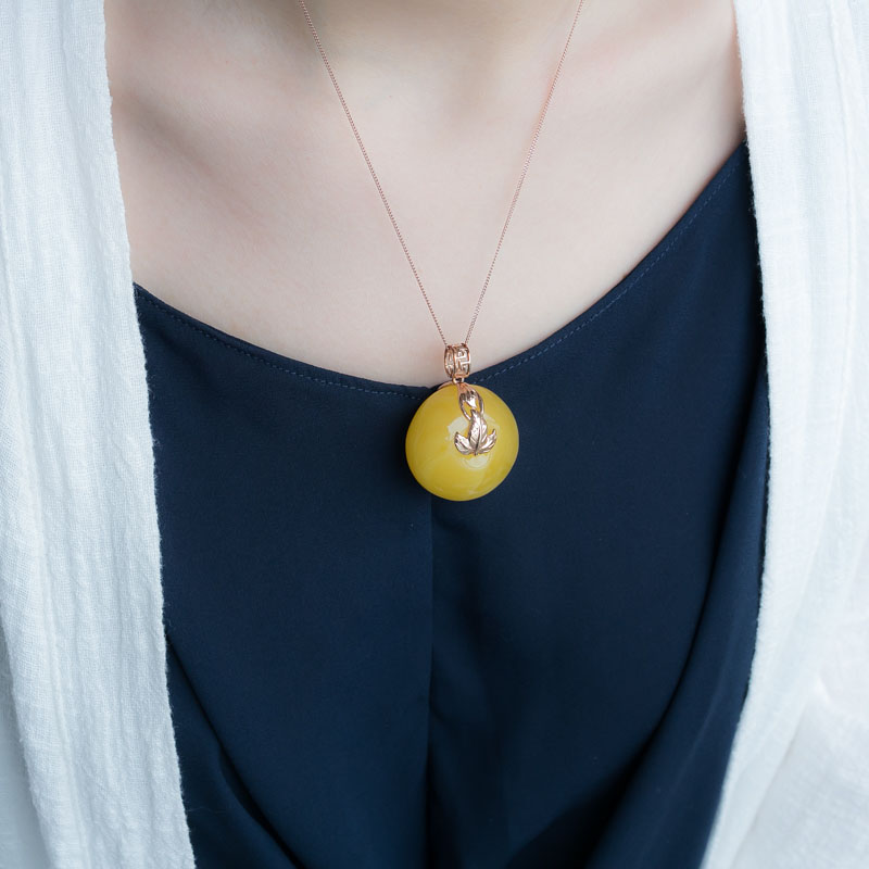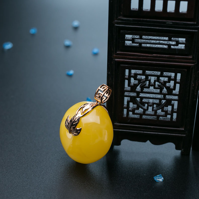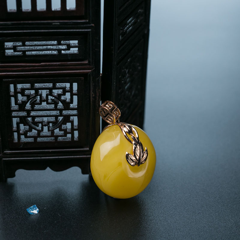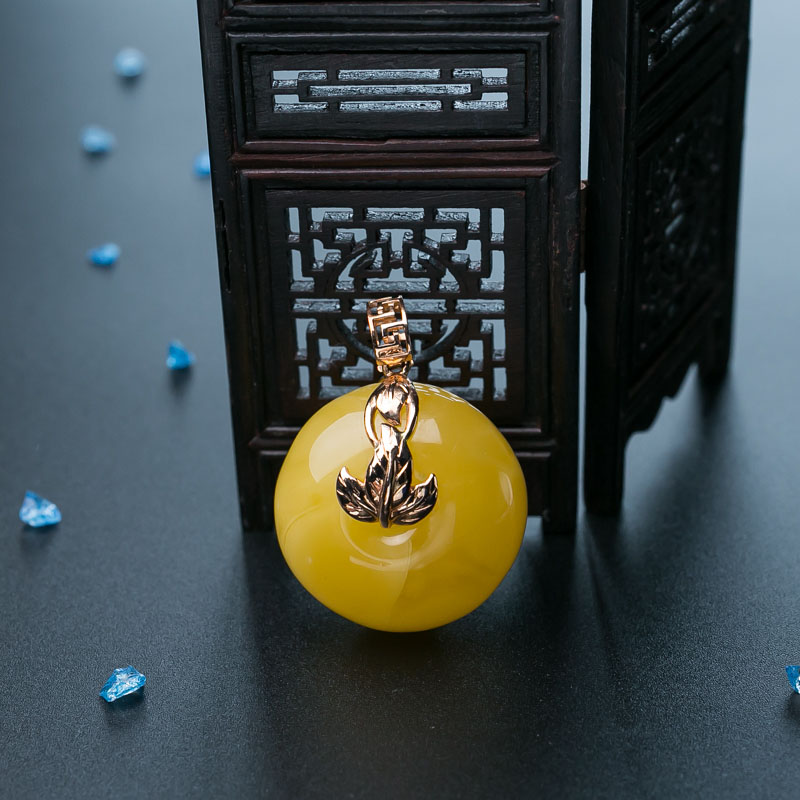 • 18K鸡油黄蜜蜡平安扣吊坠