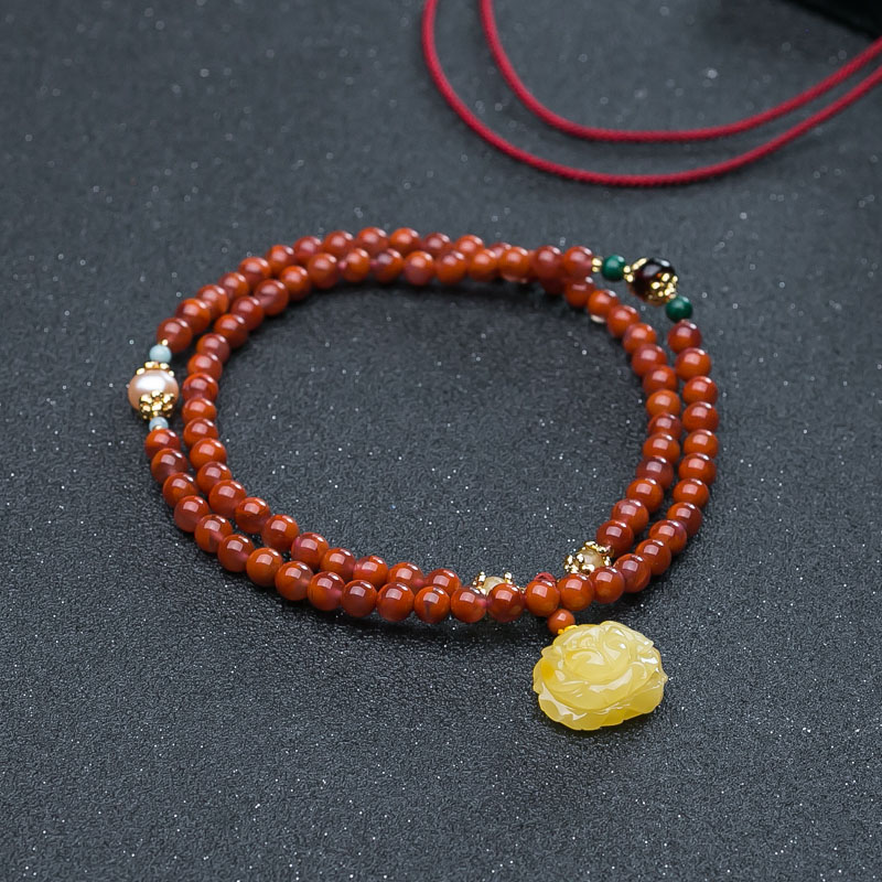 手串:吊坠长17.5mm宽19.2mm厚10.5mm,珍珠长7.7mm宽6.6mm厚5.9mm,南红珠径5.6mm,珠数84颗,全长48cm