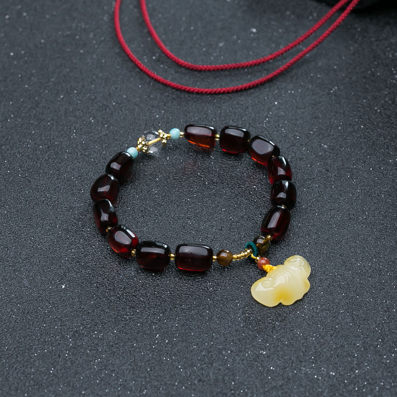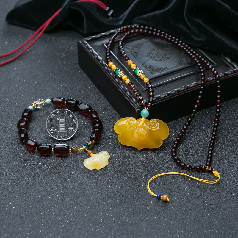 血珀长10.4mm宽8.1mm厚7.7mm,珠数12颗,全长16cm