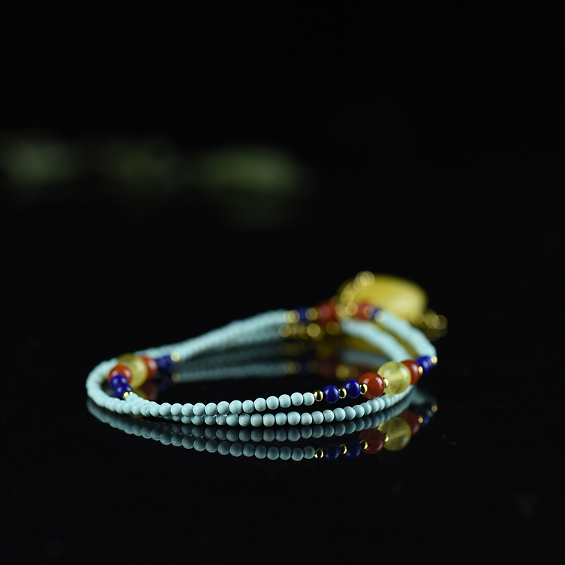 每件宝贝都是天然宝石,佩戴一段时间以后要注意清洁保养。佩戴过程中也要注意不要被硬物碰撞刮擦,避免高温、不要接触酸碱等有腐蚀性的物体以及有机溶剂。这样会让您佩戴的宝贝更漂亮