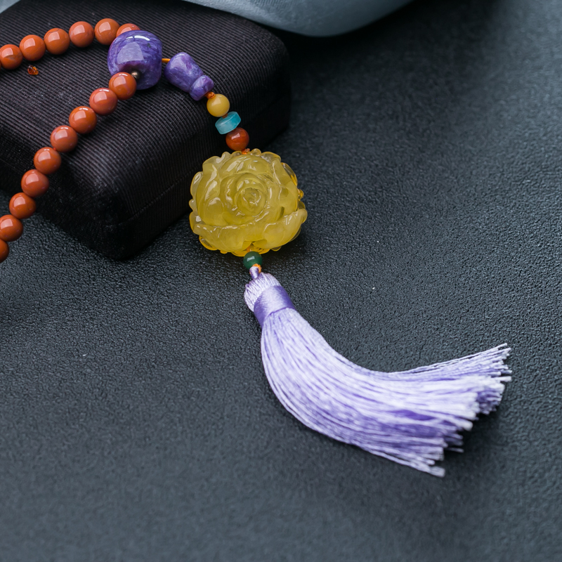 • 鸡油黄金绞蜜牡丹花毛衣链