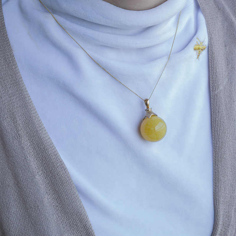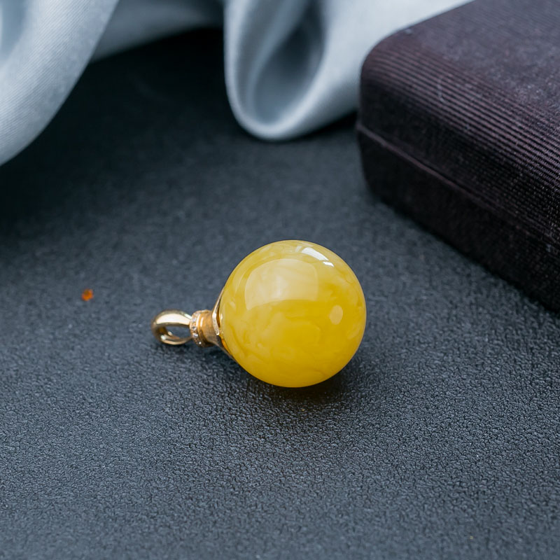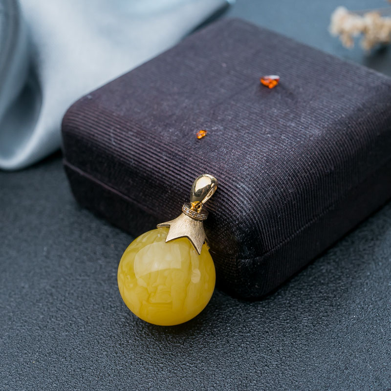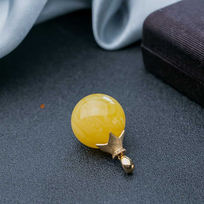 • 18K鸡油黄蜜蜡圆珠吊坠