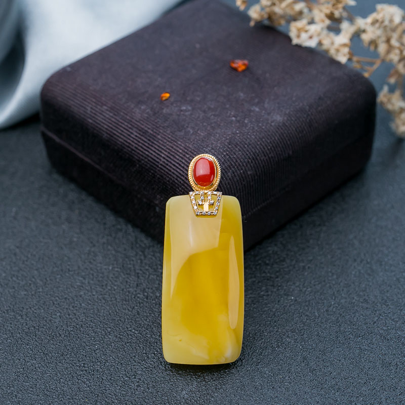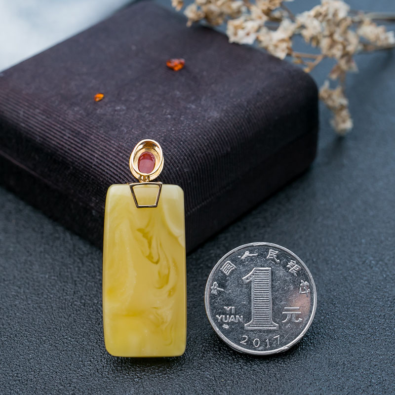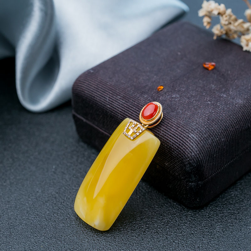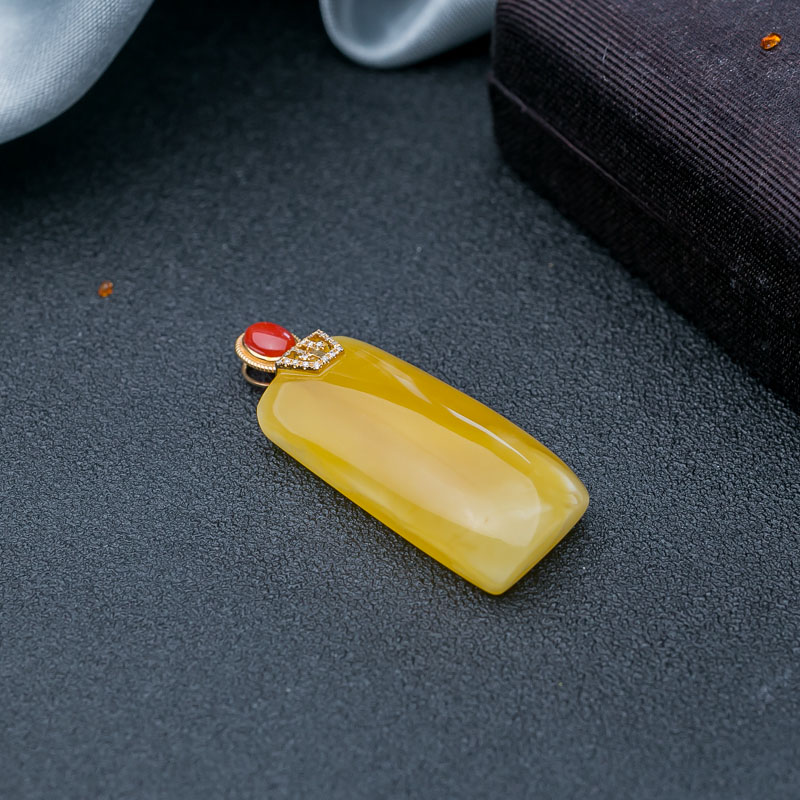 • 18K鸡油黄蜜蜡无事牌吊坠
