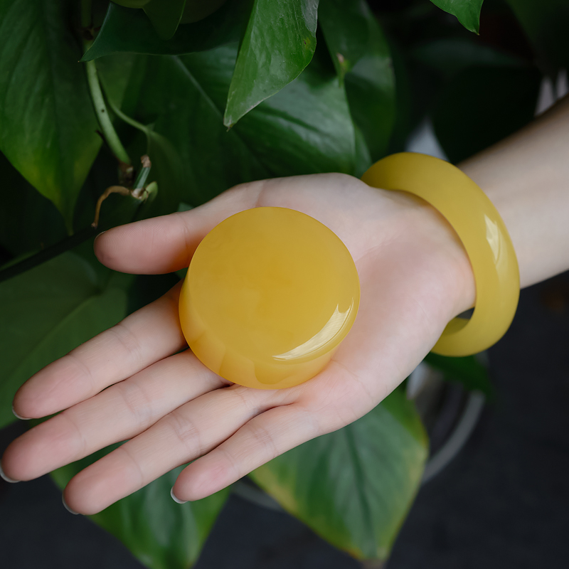 • [名  称] 59.5mm鸡油黄蜜蜡平安镯