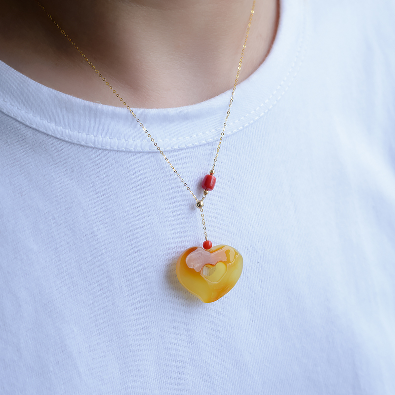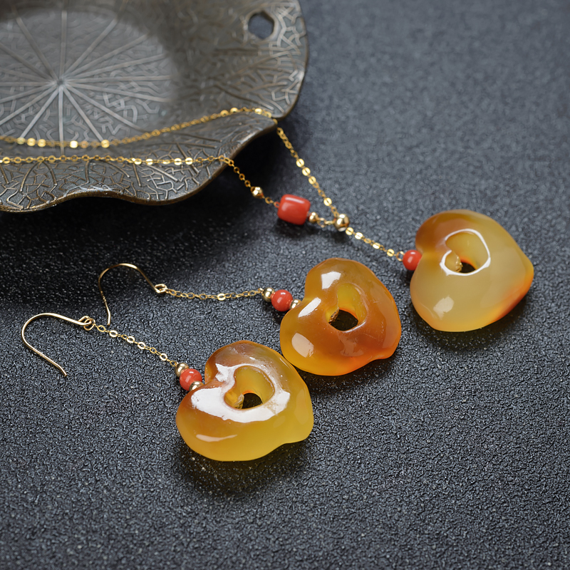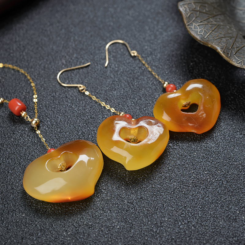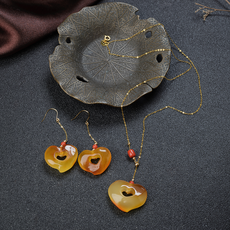 • 18K带皮鸡油黄金绞蜜心心相印套装