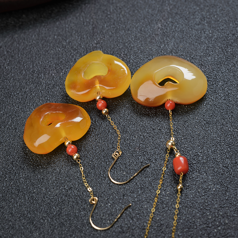 耳坠:单支总长52mm,主石长18.1mm宽22.6mm厚7.2mm