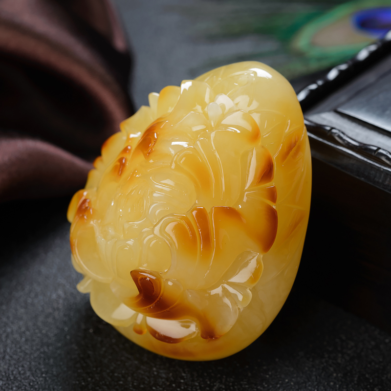 • [名  称] 带皮鸡油黄蜜蜡牡丹花吊坠