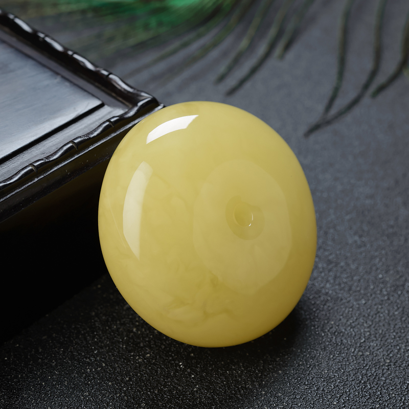 • [名  称] 鸡油黄蜜蜡平安扣吊坠
