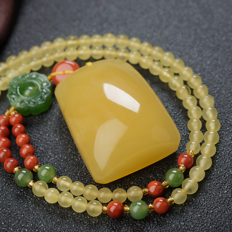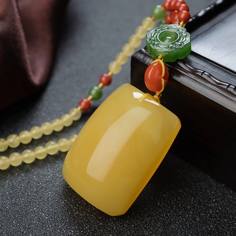 • [名  称] 鸡油黄蜜蜡方牌吊坠
