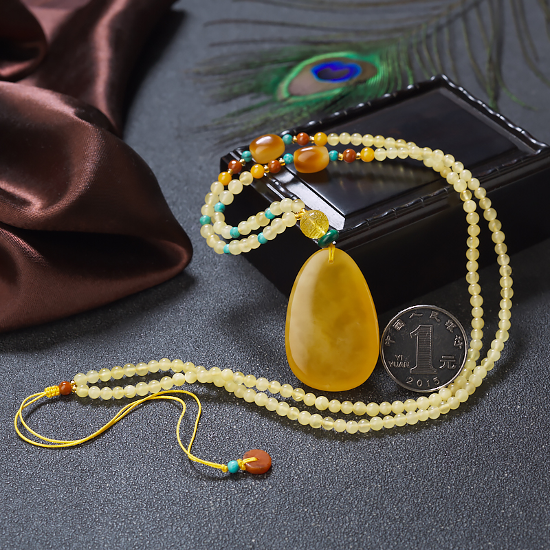 蜜蜡珠径4mm,配链全长65cm,蜜蜡珠数152颗