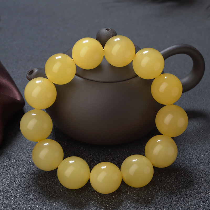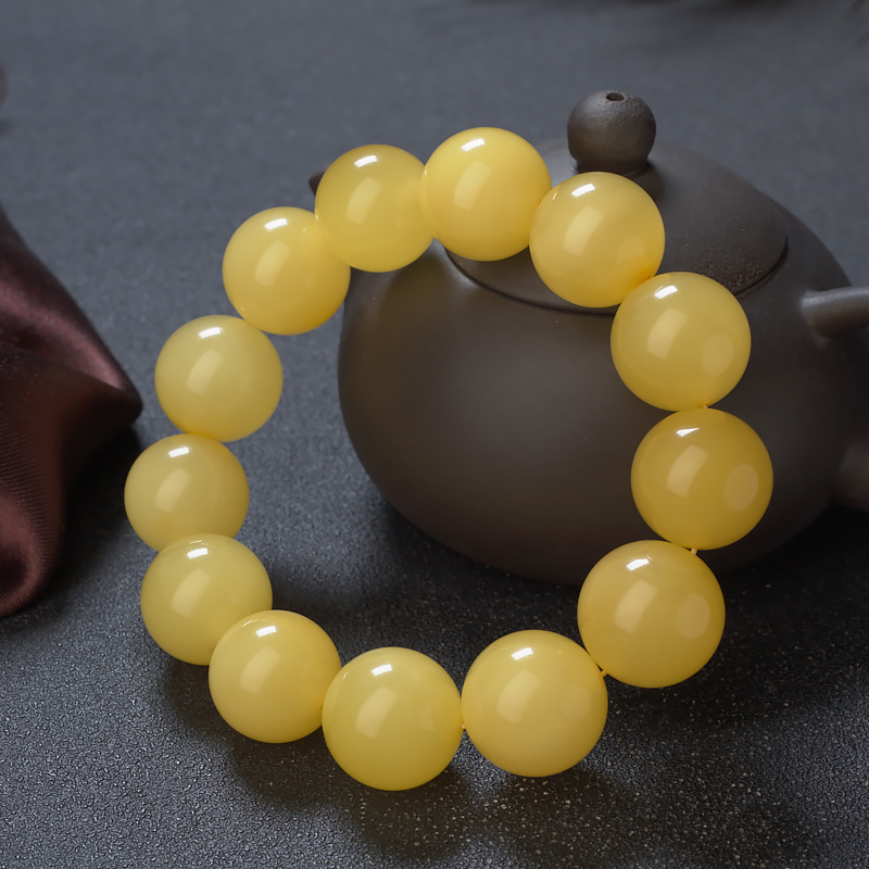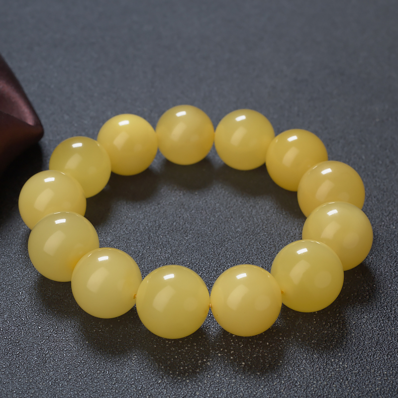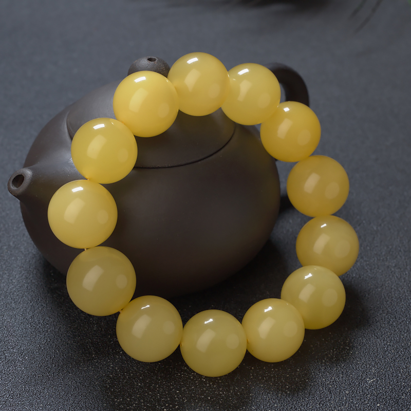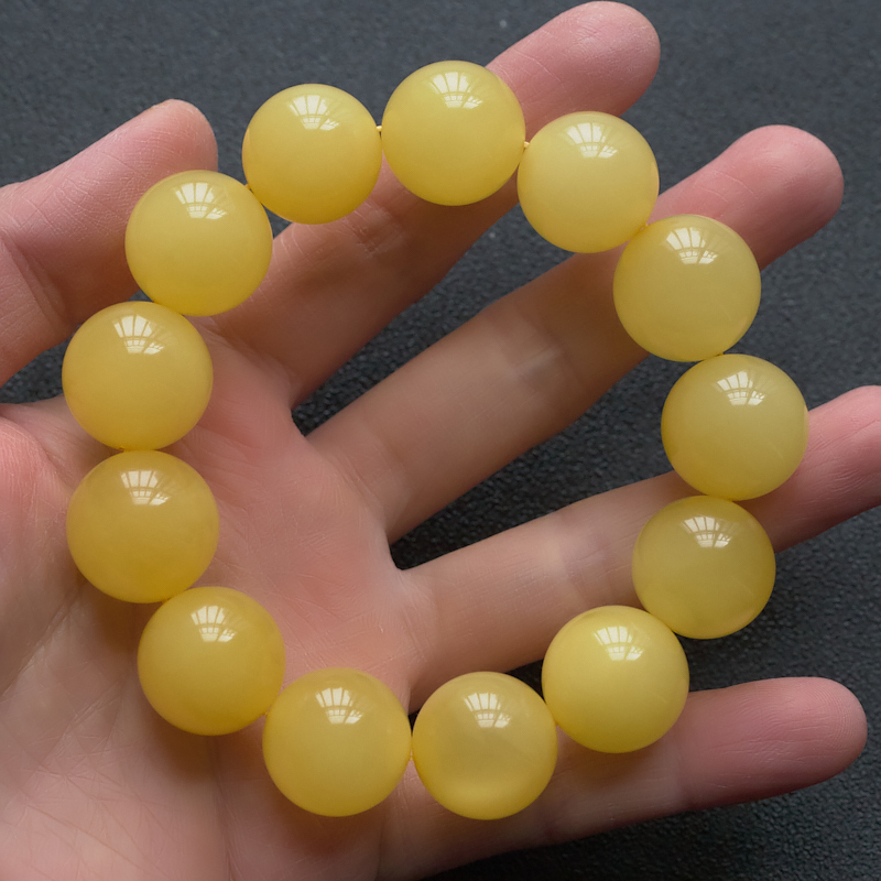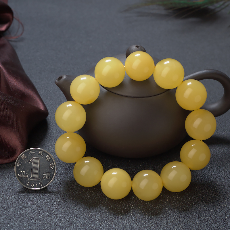 • 18.5mm鸡油黄蜜蜡单圈手串
