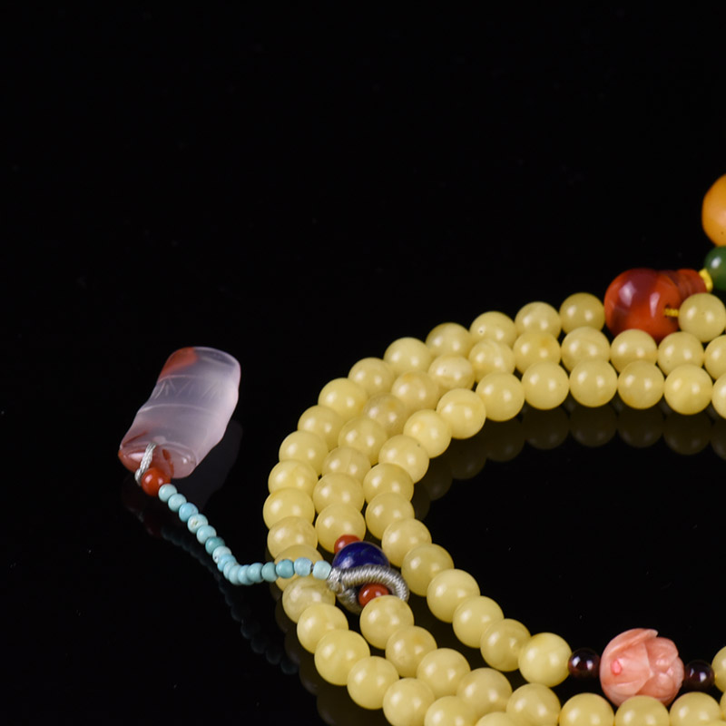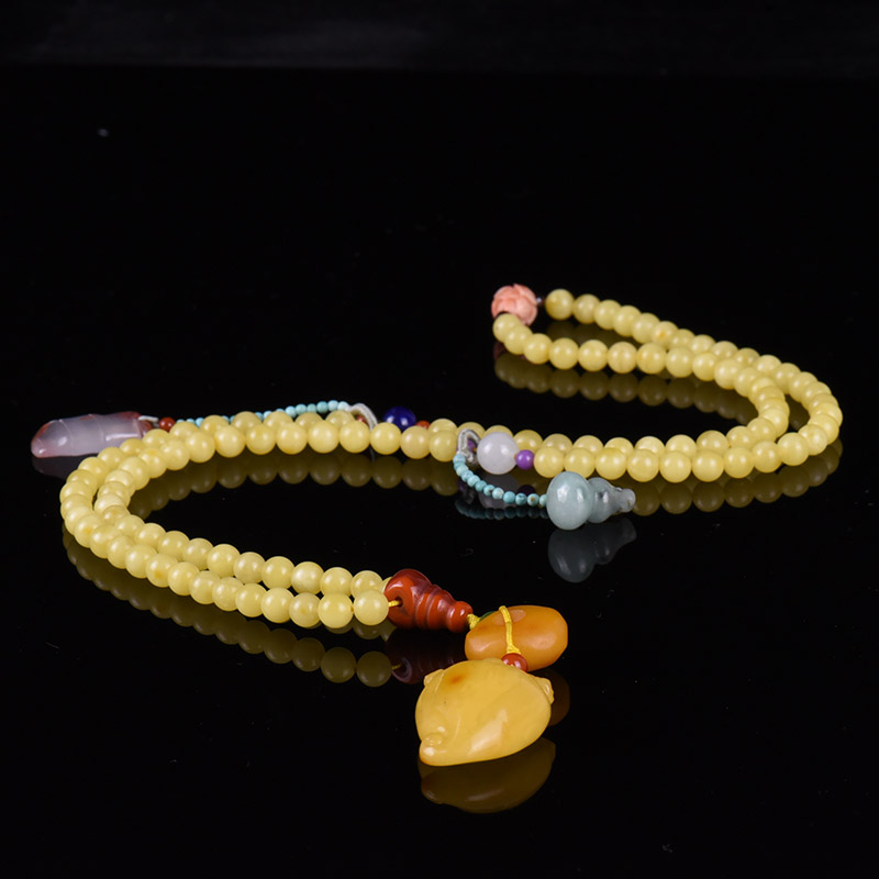 • 6mm鸡油黄蜜蜡福寿108佛珠