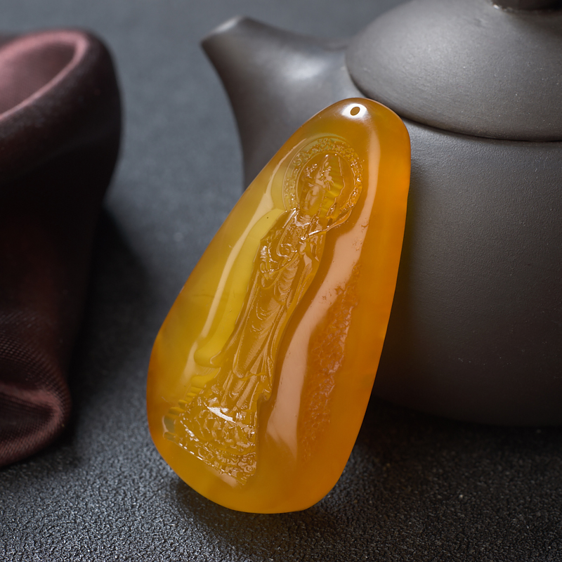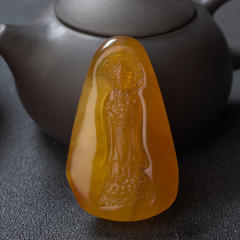 • [名  称] 带皮鸡油黄金绞蜜观音吊坠