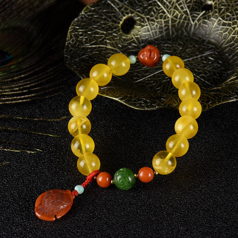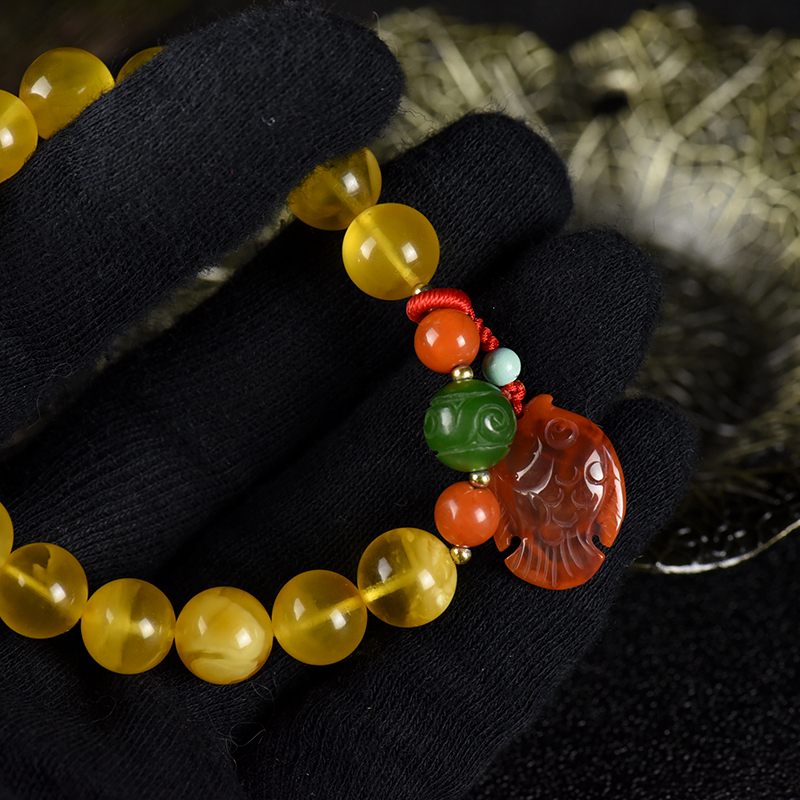 • [名  称] 9.5mm鸡油黄蜜蜡单圈手串