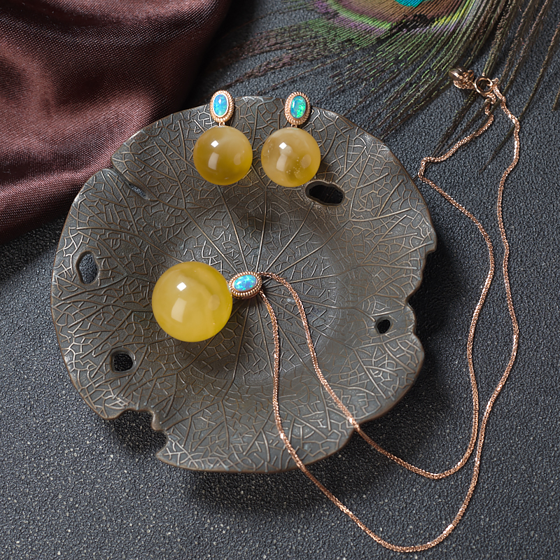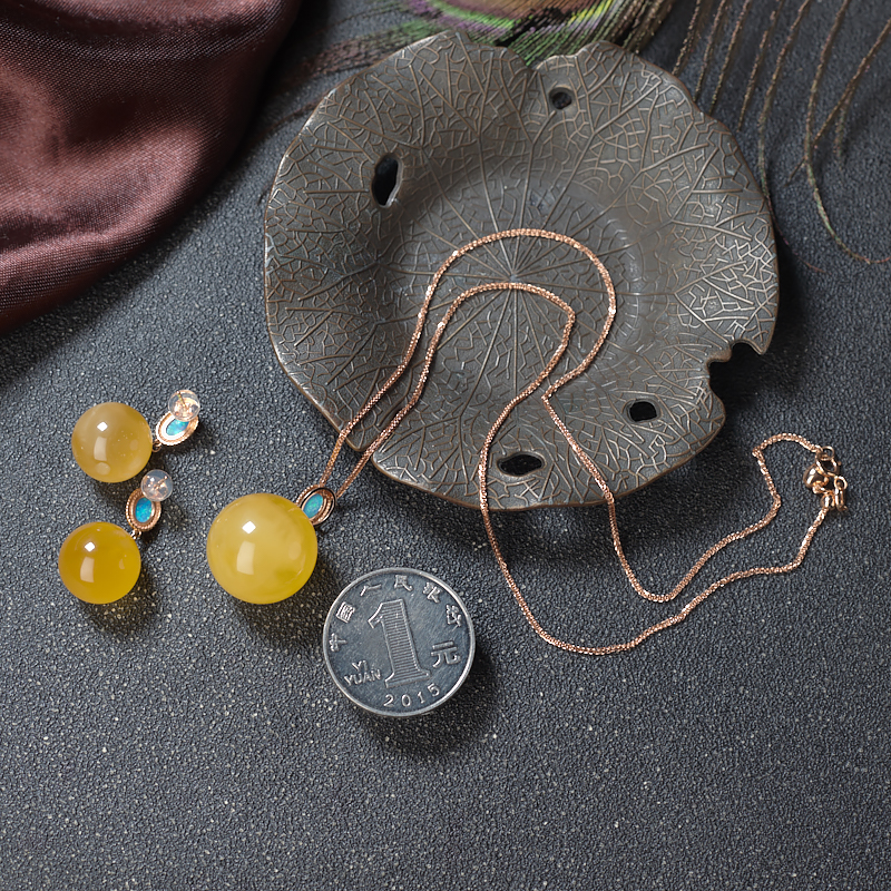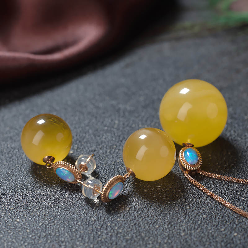 • [名  称] 18K鸡油黄金绞蜜圆珠吊坠/耳坠套装