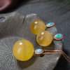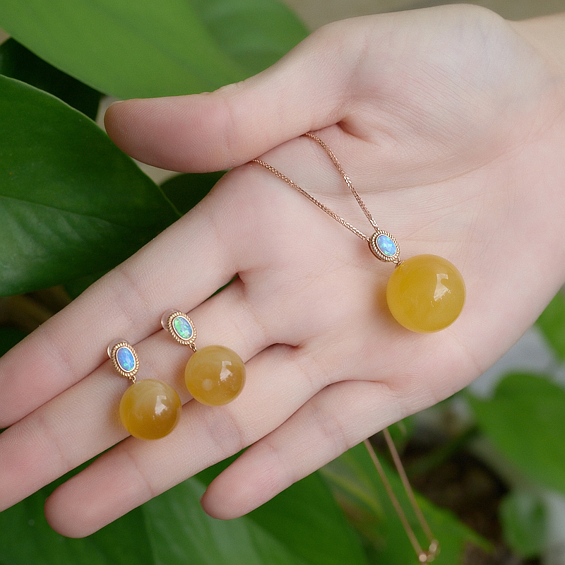 • 18K鸡油黄金绞蜜圆珠吊坠/耳坠套装