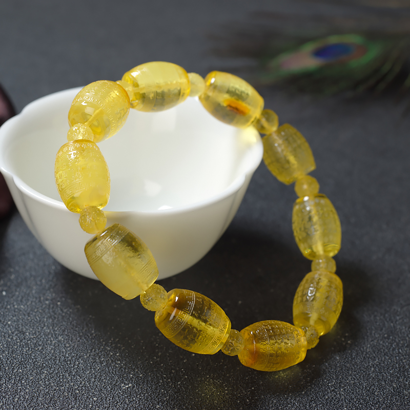 • 鸡油黄金绞蜜心经桶珠单圈手串