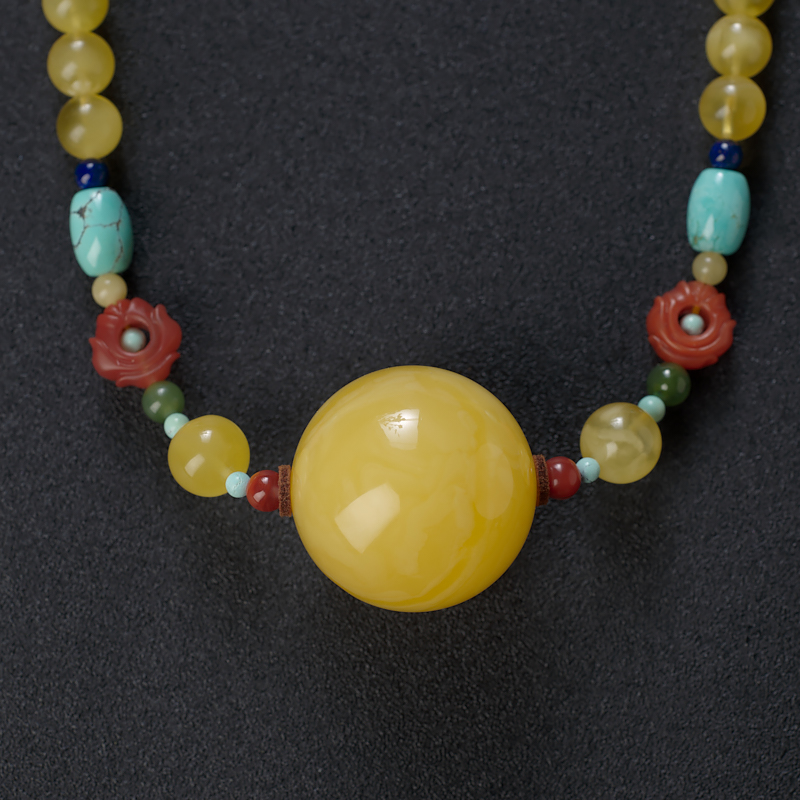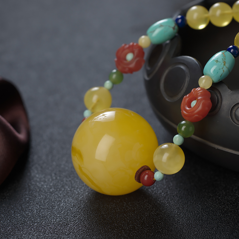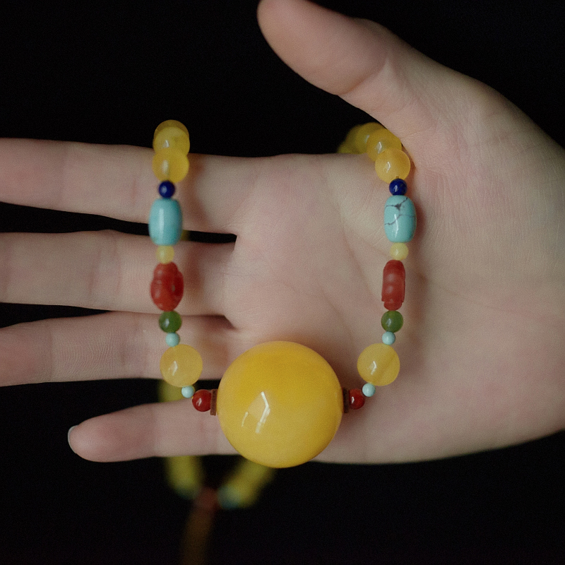 • [产品描述] 配饰:蜜蜡、南红、碧玉、绿松石、青金石、血珀