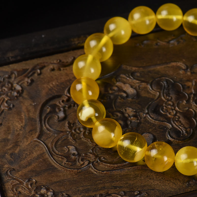 • 9.5mm鸡油黄蜜蜡单圈手串