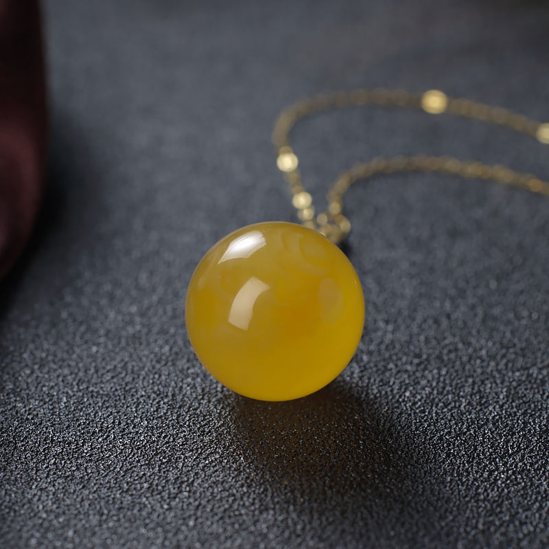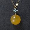 • 18K鸡油黄蜜蜡圆珠吊坠