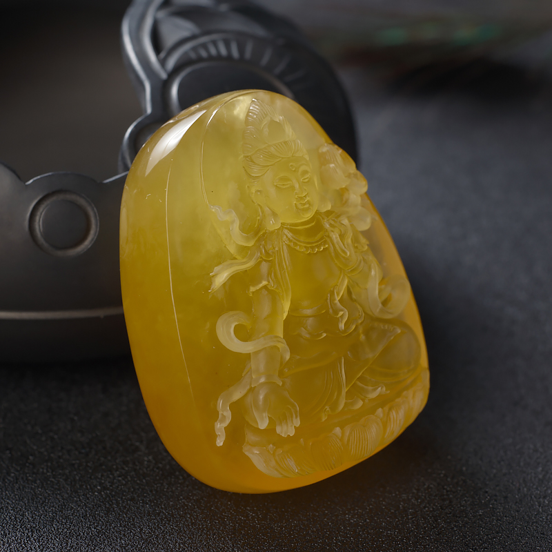 • 鸡油黄蜜蜡度母吊坠