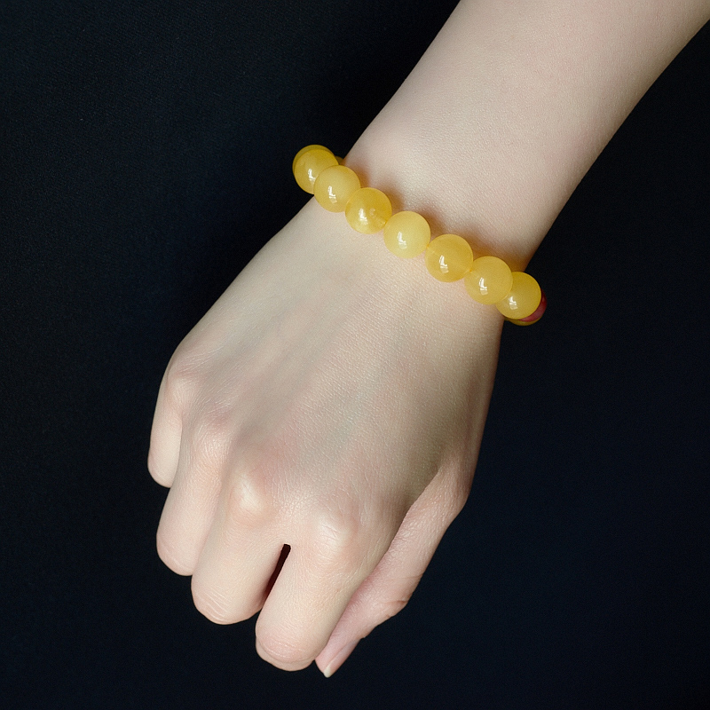 • 11.5mm鸡油黄蜜蜡单圈手串