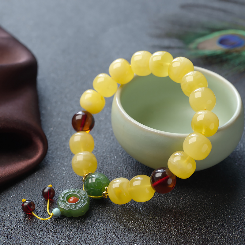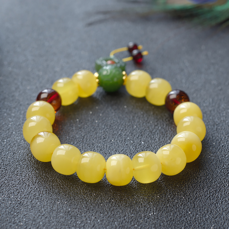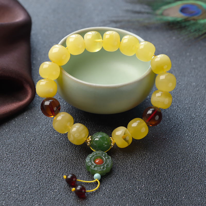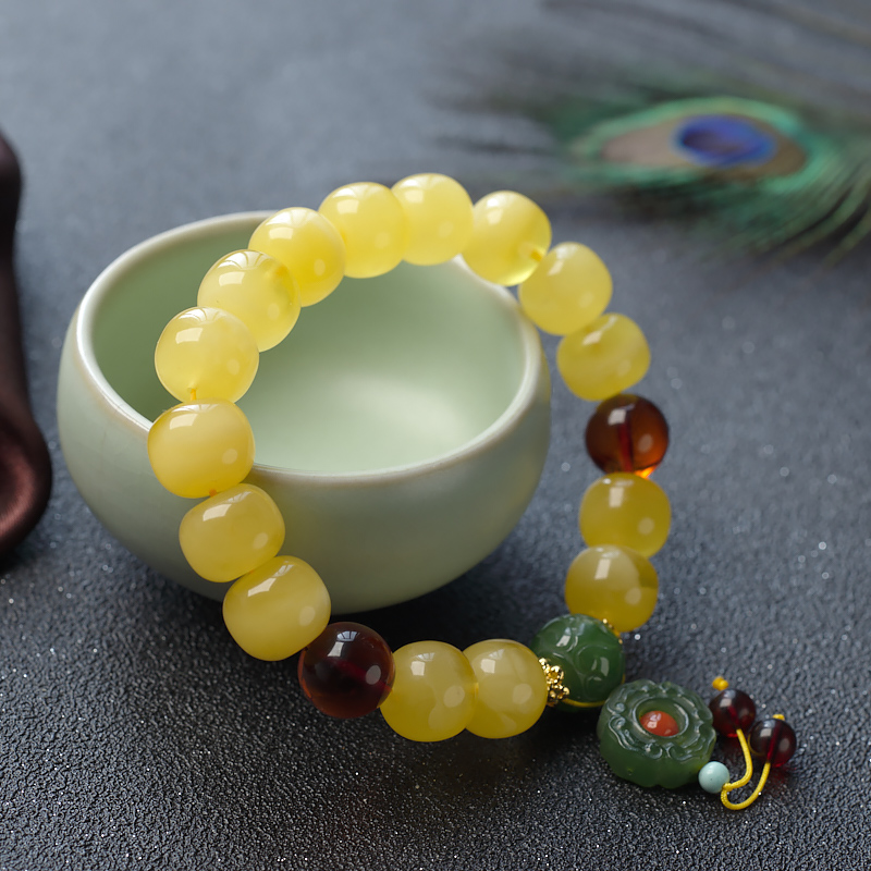 • [名  称] 鸡油黄蜜蜡桶珠单圈手串