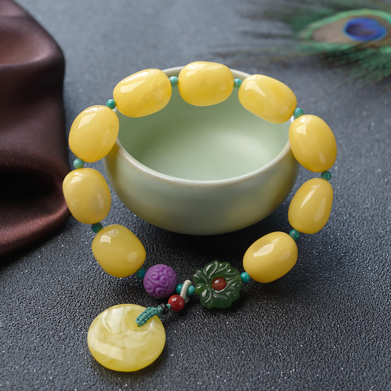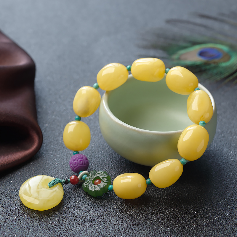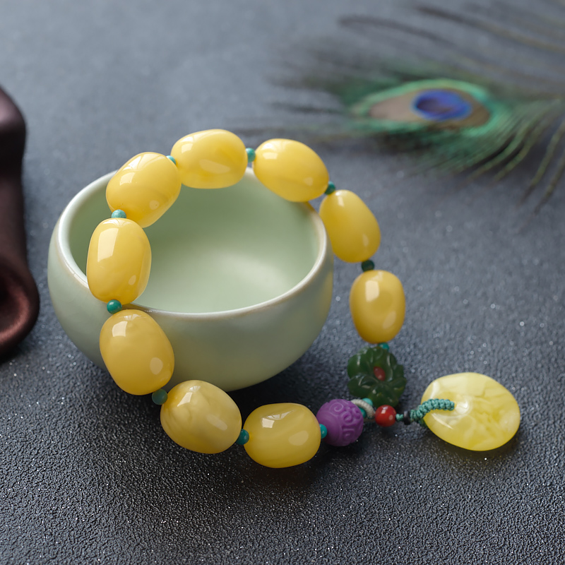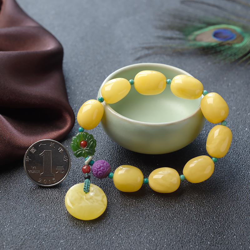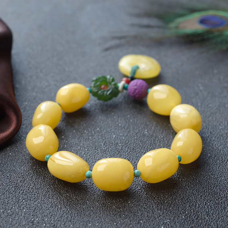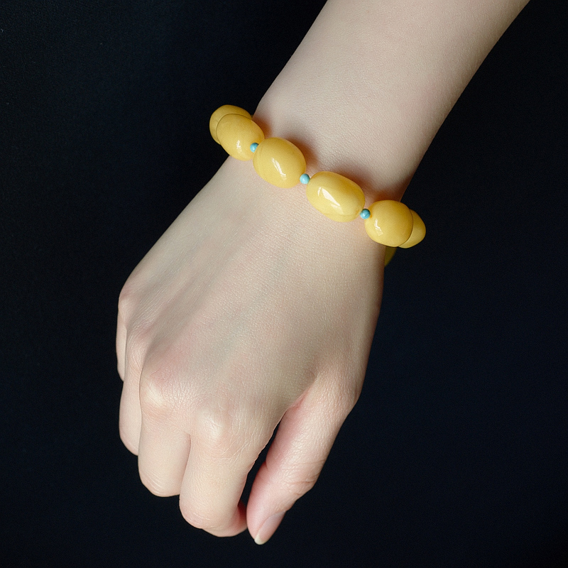 • [名  称] 鸡油黄蜜蜡随形珠单圈手串