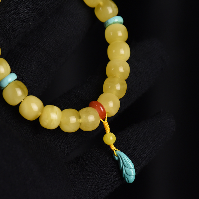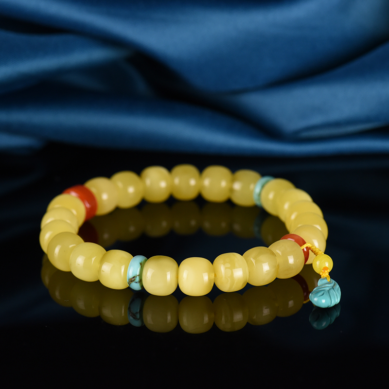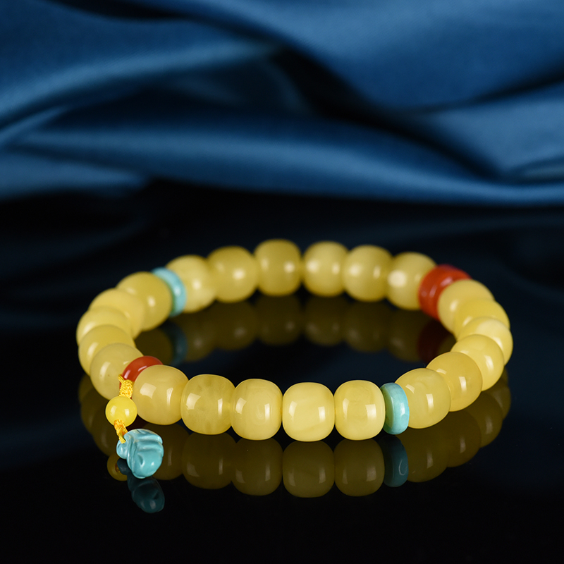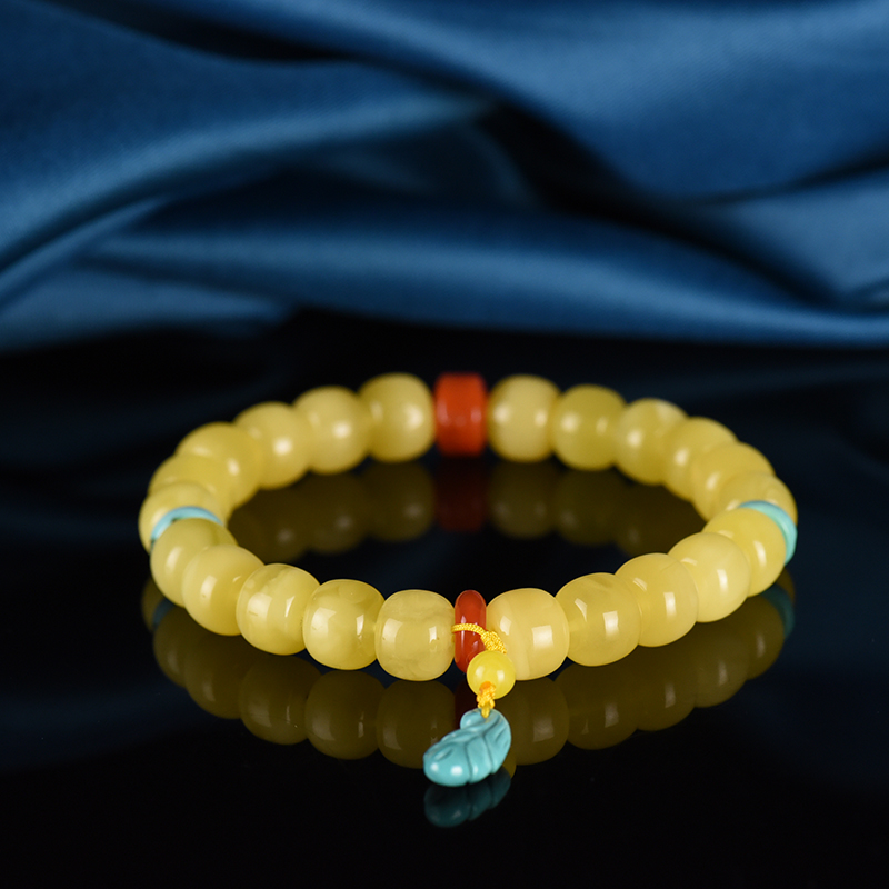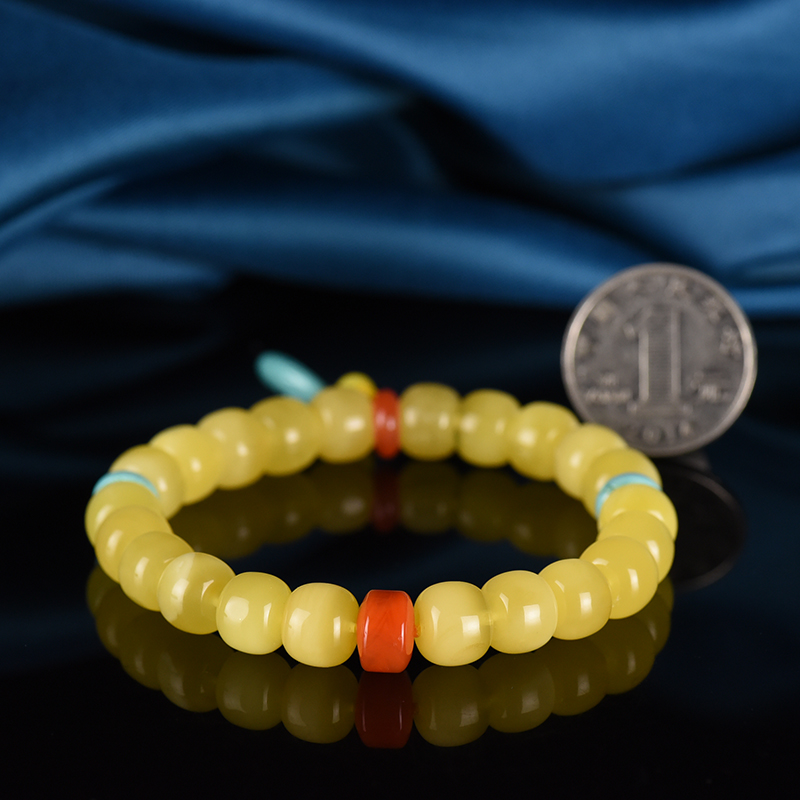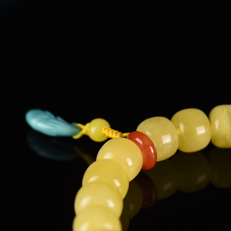 • [名  称] 鸡油黄蜜蜡老形珠单圈手串