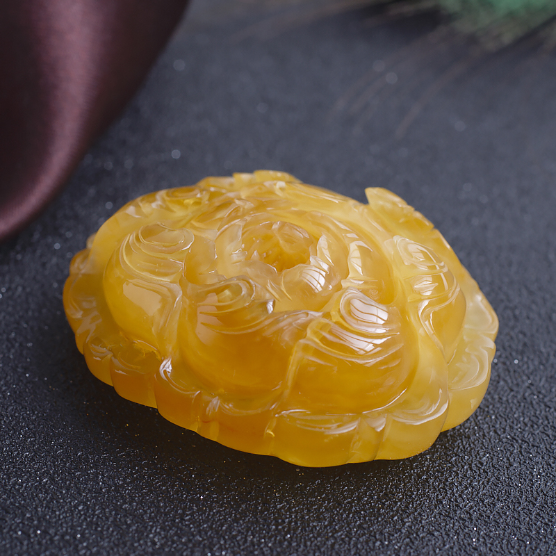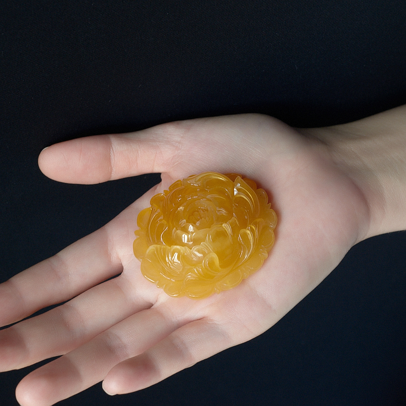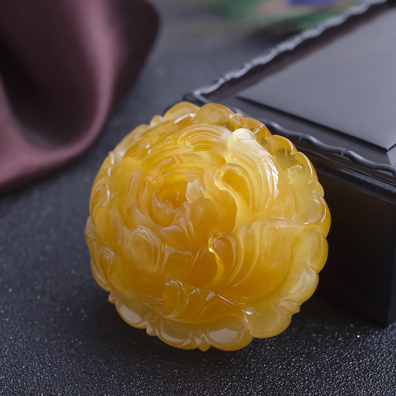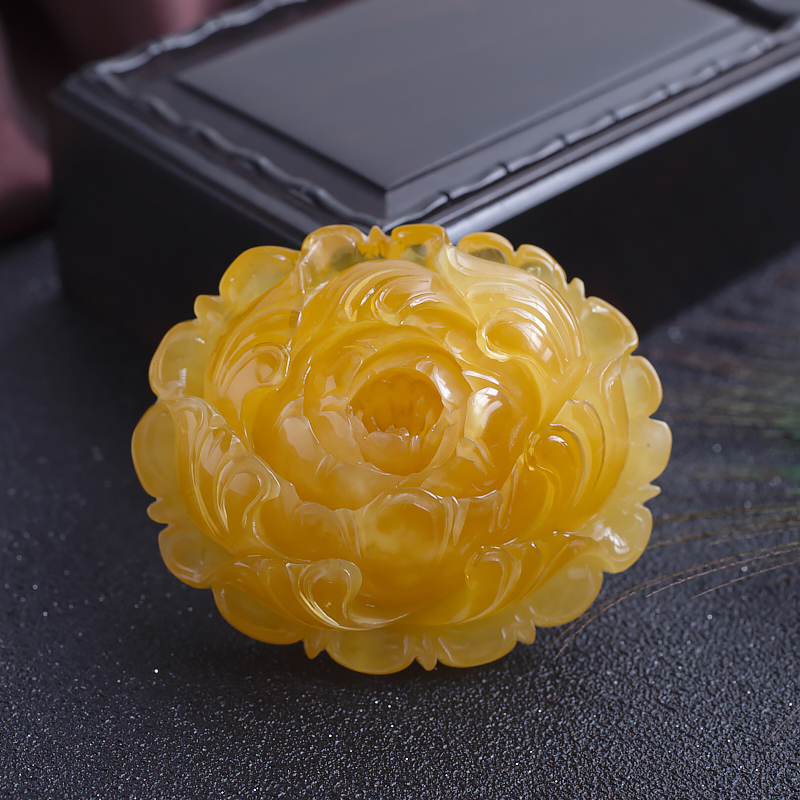 • 鸡油黄蜜蜡花开富贵吊坠