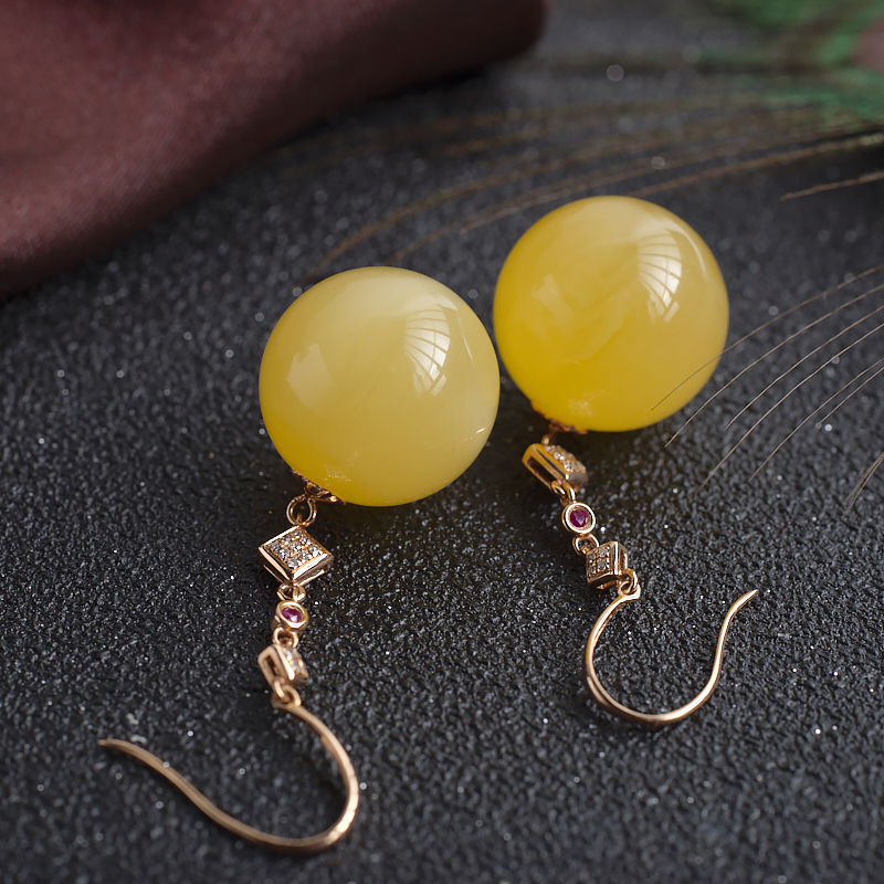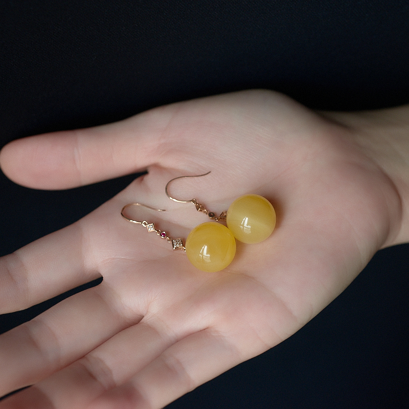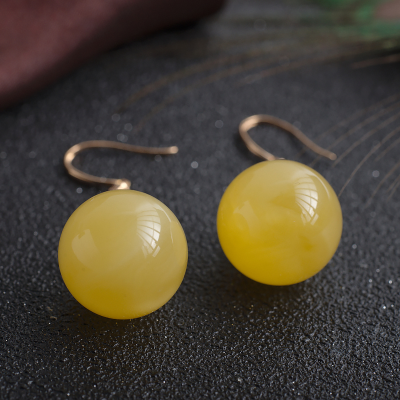 • [名  称] 18K鸡油黄蜜蜡圆珠耳环