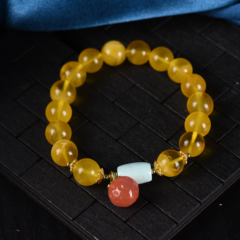 • [名  称] 9.5mm鸡油黄蜜蜡单圈手串
