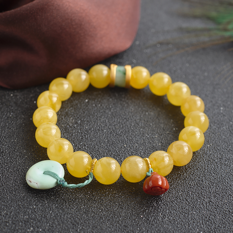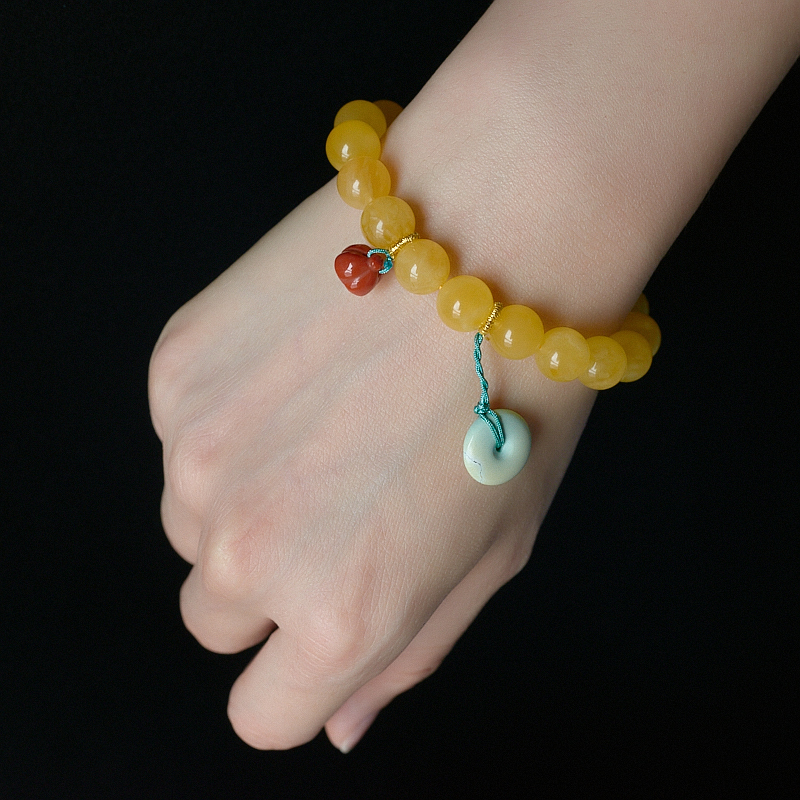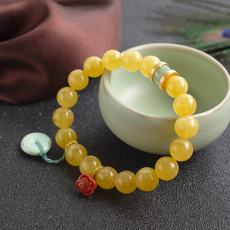 • 9.5mm鸡油黄金绞蜜单圈手串