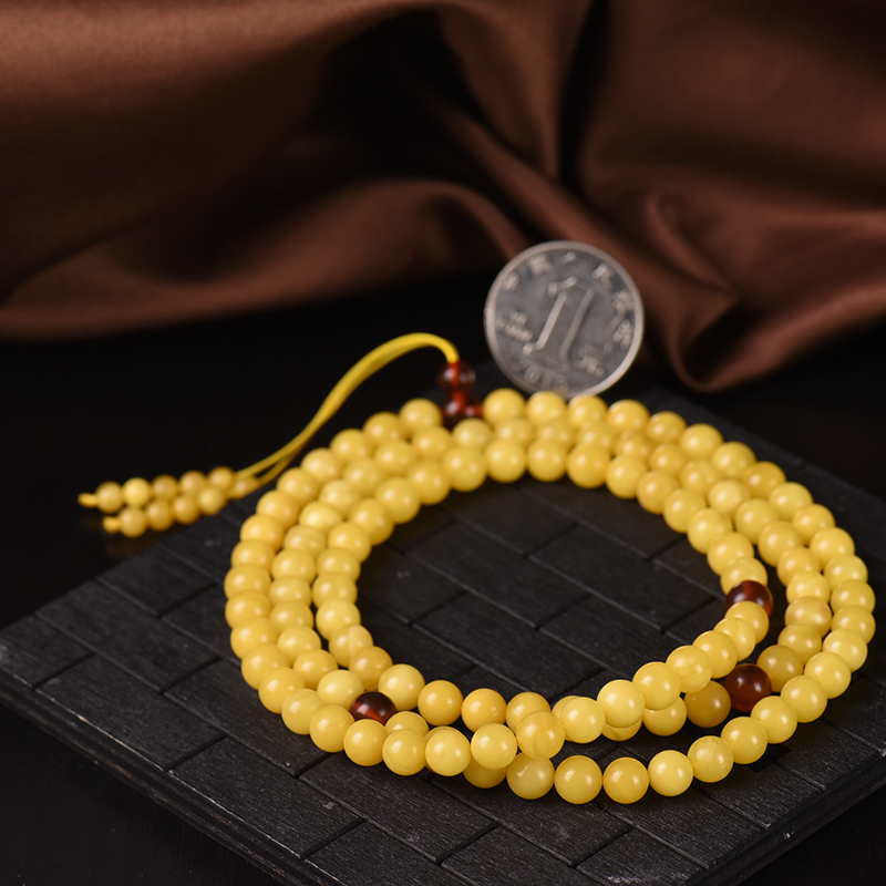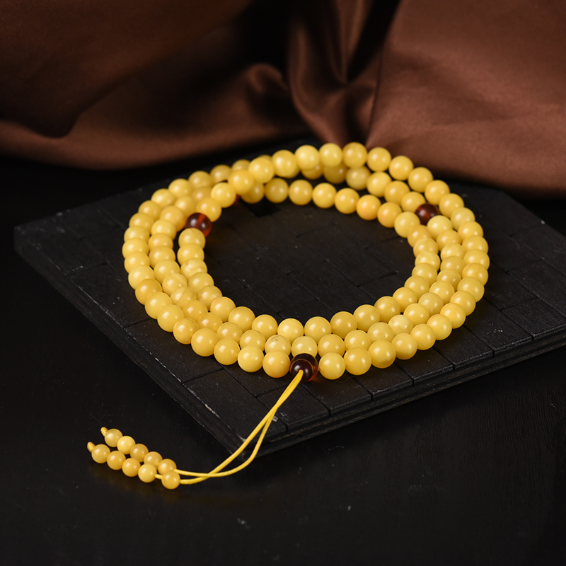 • 6.5mm鸡油黄蜜蜡108佛珠