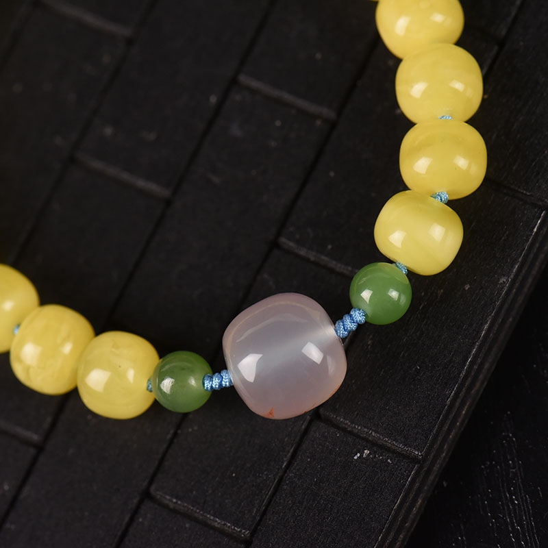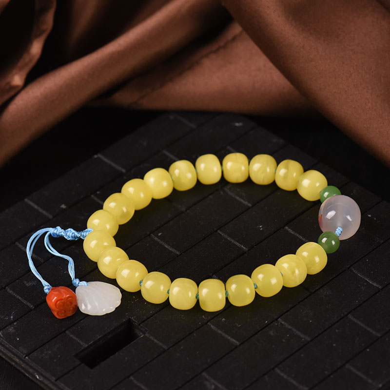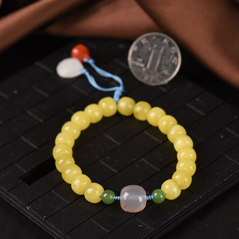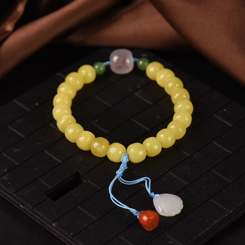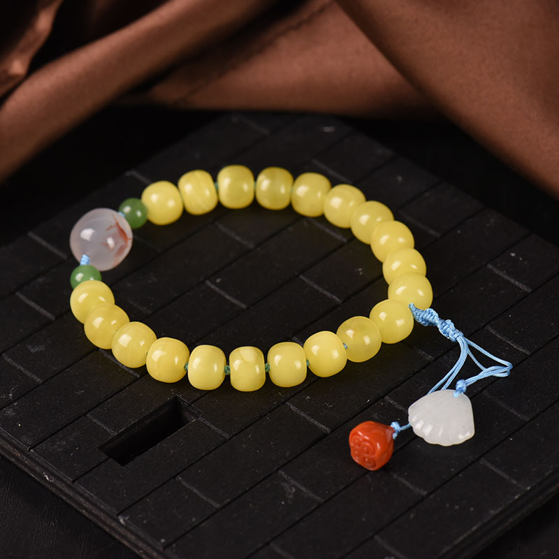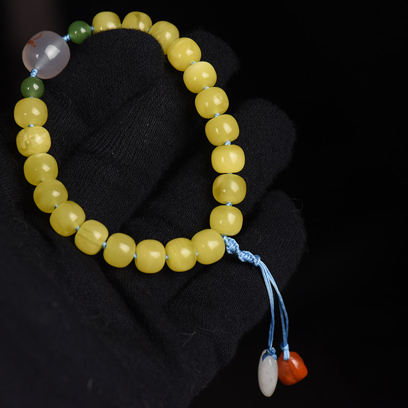 • [名  称] 鸡油黄蜜蜡老形珠单圈手串