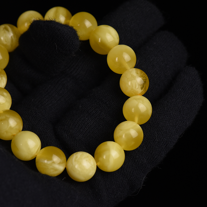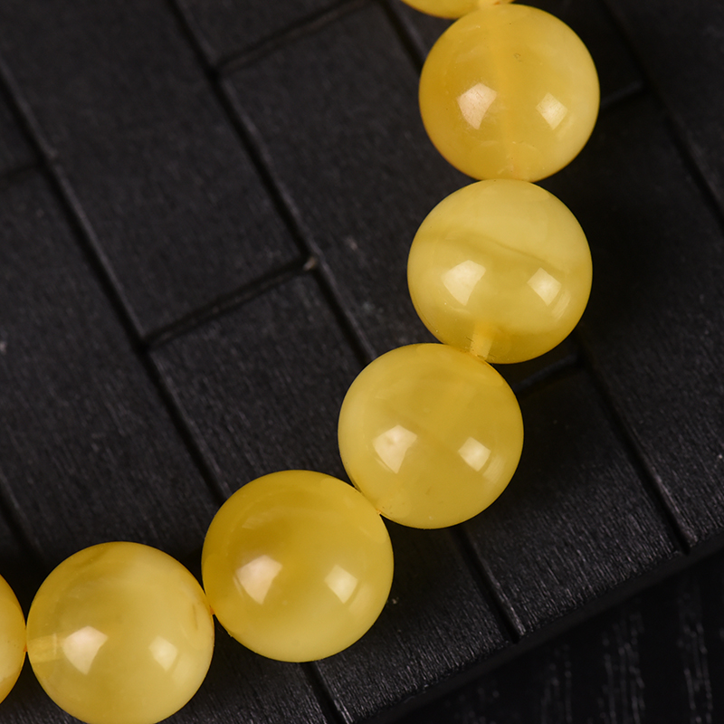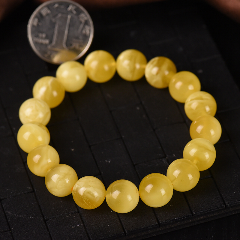 • 11.5mm鸡油黄蜜蜡单圈手串