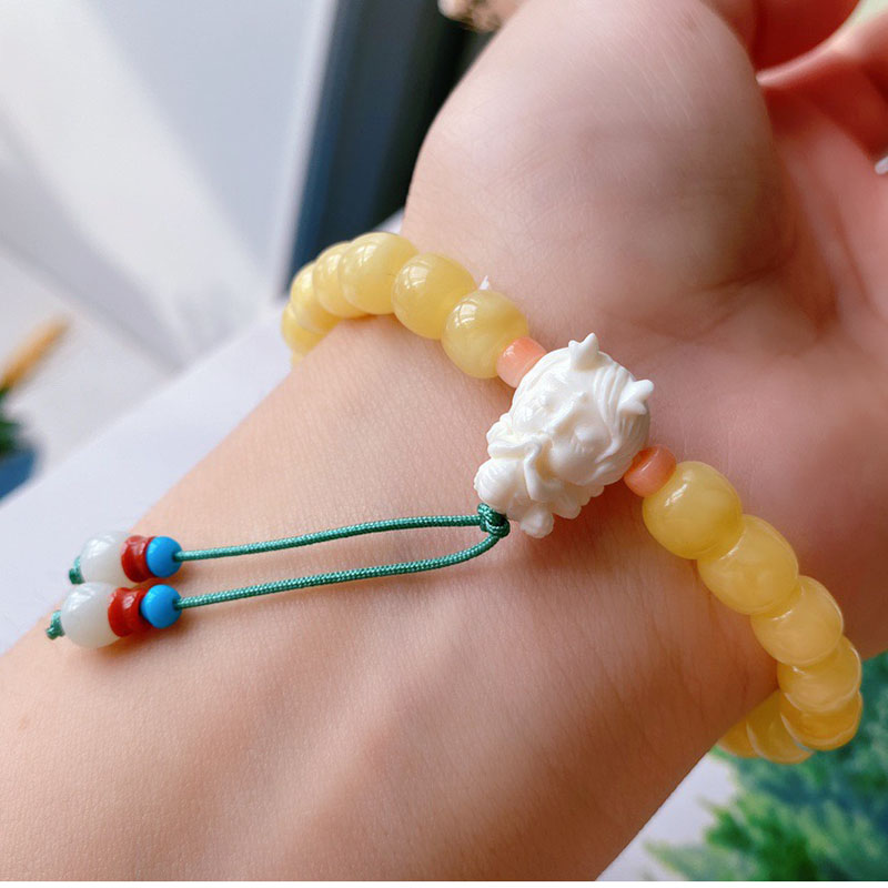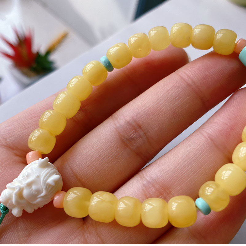 • [名  称] 鸡油黄蜜蜡老形珠单圈手串