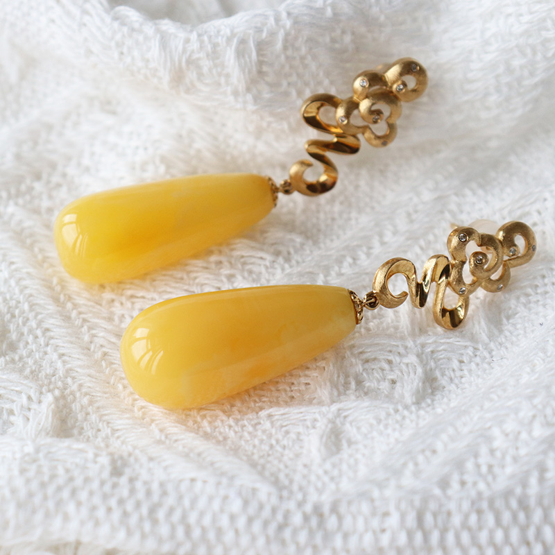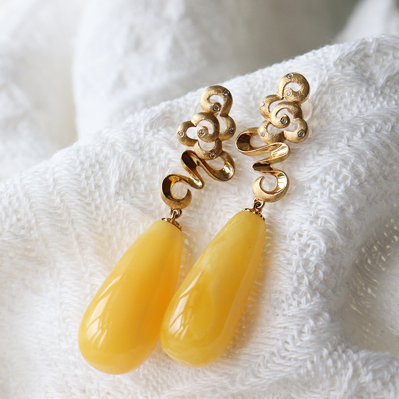 • [名  称] 18k鸡油黄蜜蜡水滴耳环