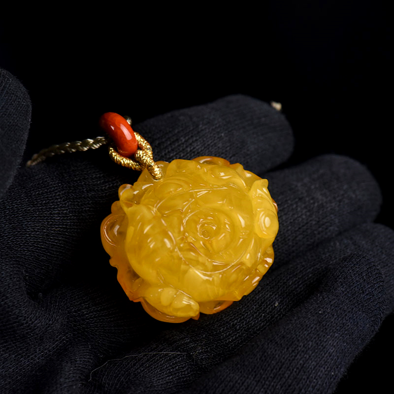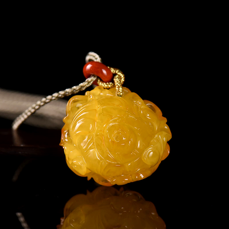 • [名  称] 鸡油黄蜜蜡牡丹吊坠