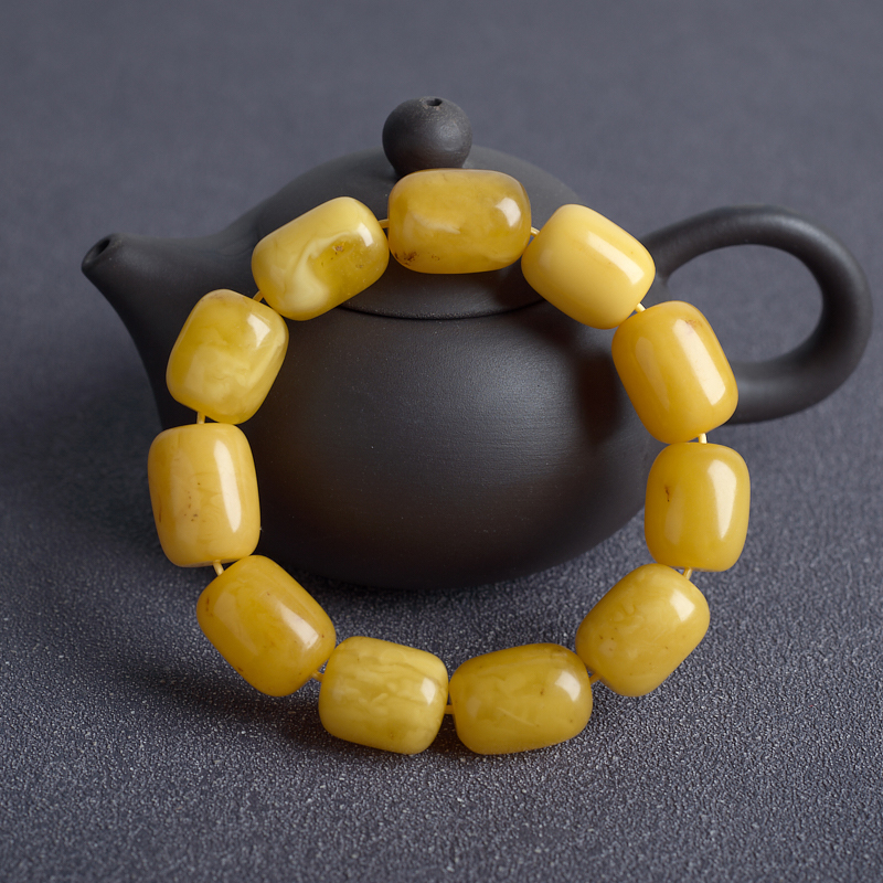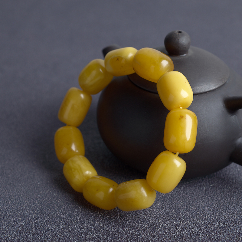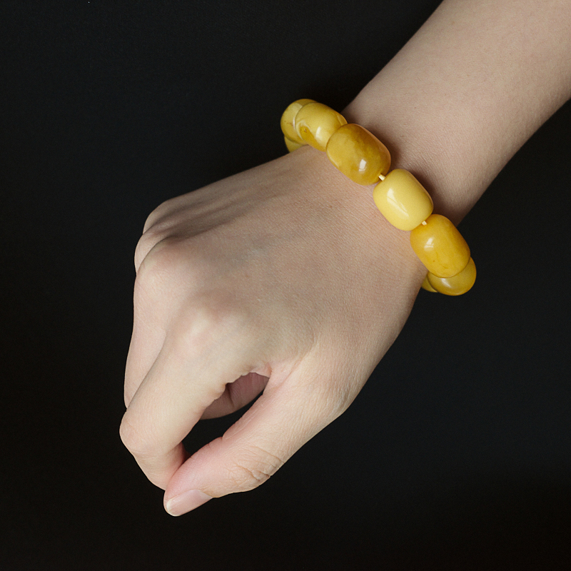 • [名  称] 鸡油黄蜜蜡桶珠单圈手串