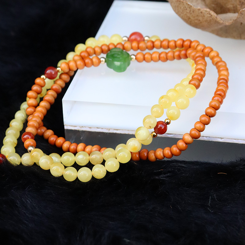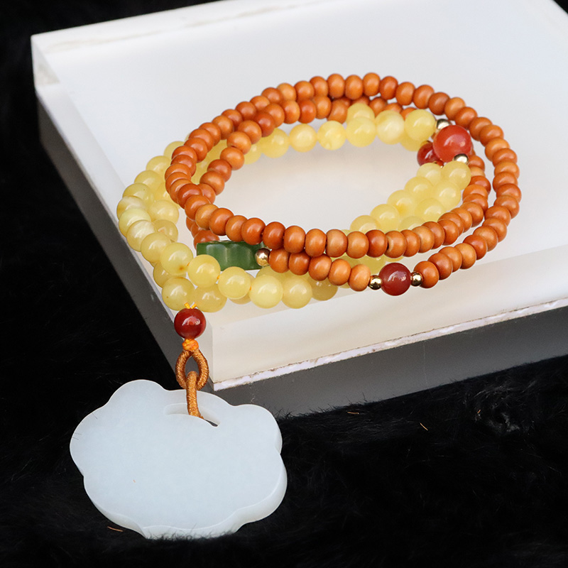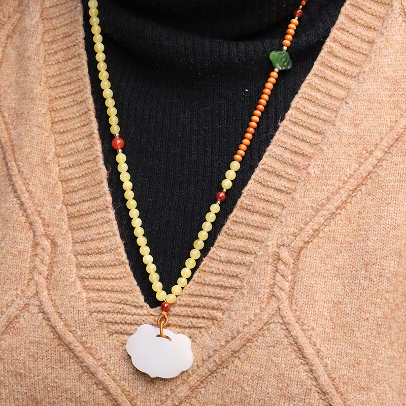 • [名  称] 鸡油黄蜜蜡如意锁项链
